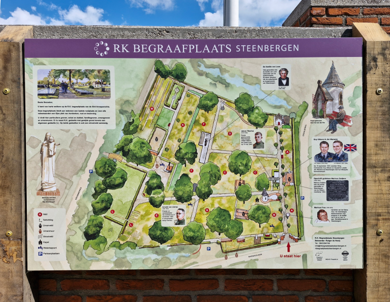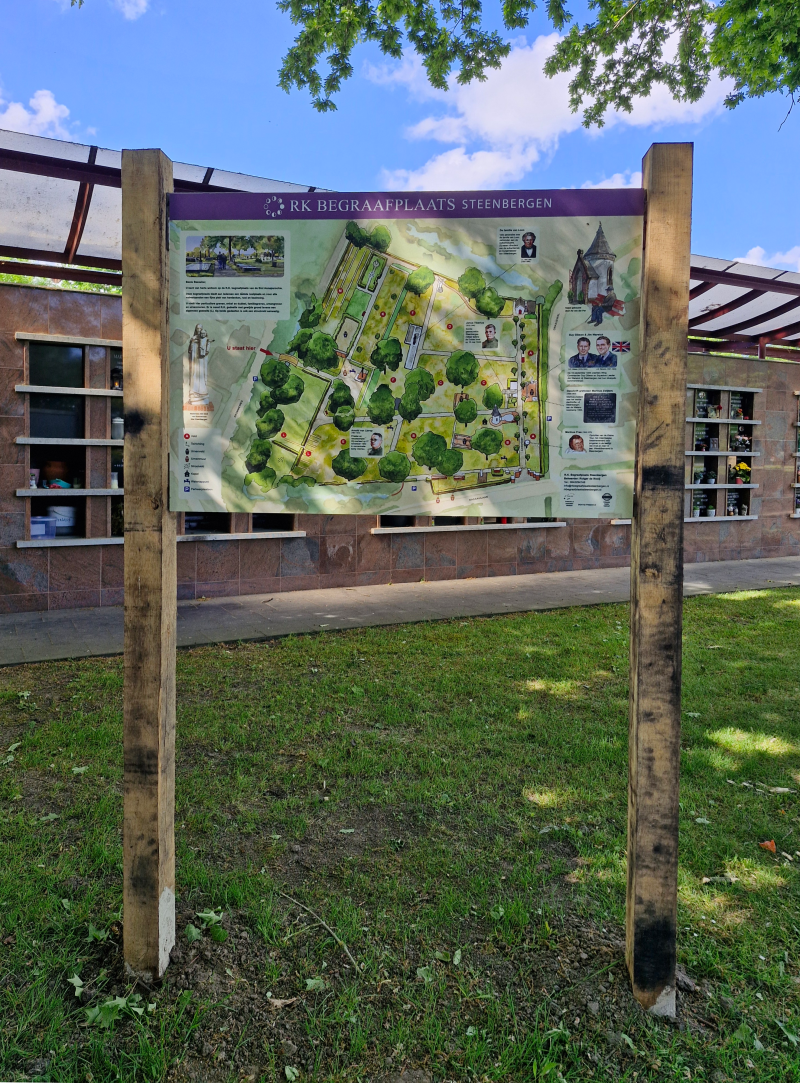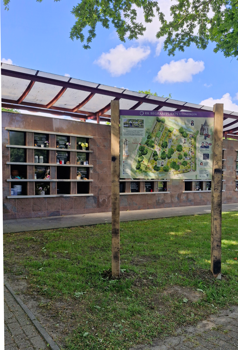 De Informatiepanelen bij de Rooms Katholieke begraafplaats Steenbergen zijn geplaatst, één bij de ingang aan de Nassaulaan en de tweede bij de ingang aan de Krommeweg.