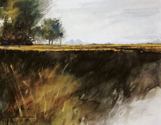Schorren en slikken - acryl op doek, 70 x 120 cm.