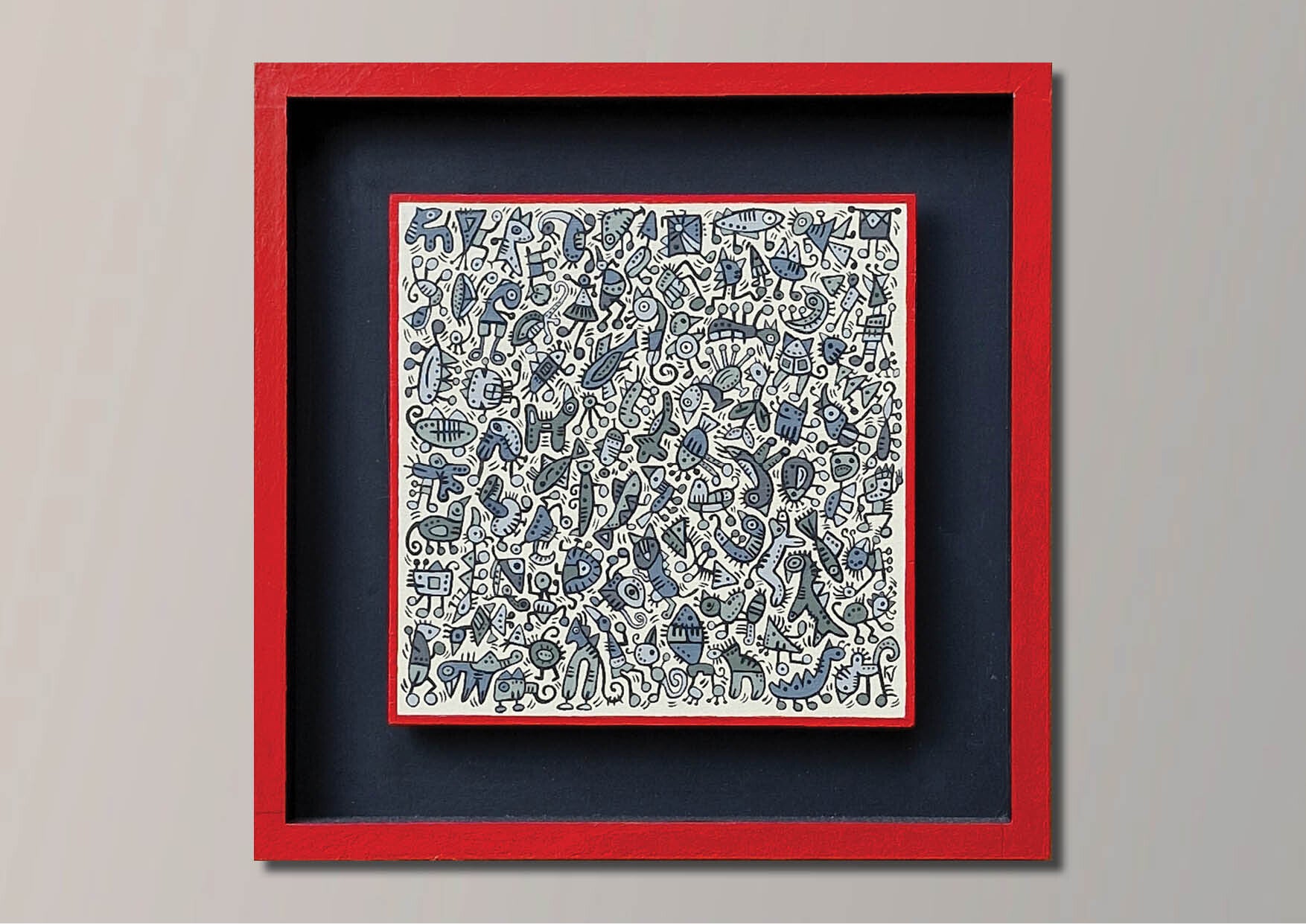 Gouache op paneel, met lijst 30 X 30 cm